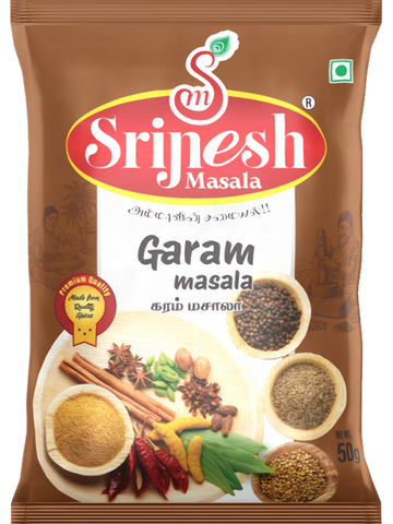 This is a mixture of spices, Add 5 to 10g of Srinesh Garam Masala with gravy kuruma and any kind of dishes, will increase the taste and flavour of Vegetarian and non-veg, Preparation.